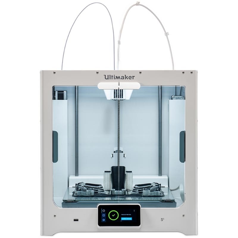 La Ultimaker S5 es una impresora 3D FDM de escritorio para su oficina. Tiene un gran volumen de construcción y puede fabricar componentes de fabricación aditiva con precisión y calidad industrial. La Ultimaker S5 está específicamente diseñada para producir impresiones 3D de calidad industrial en un entorno de oficina, en su escritorio. Esta impresora 3D viene con un alto grado de usabilidad. La impresora 3D FDM profesional logra esto a través de una multitud de características y mejoras. Un cambio notable, en comparación con Ultimaker 3, es la pantalla táctil a todo color. Esto le permite una operación intuitiva y una configuración sin complicaciones. También le proporciona información detallada sobre el estado de su Ultimaker 5S. Otra ventaja importante es el mayor volumen de construcción y su cama de impresión 3D inteligente. Viene con placa de vidrio y puede equiparse con aluminio revestido en el futuro. Esto le garantizará una variedad aún mayor de materiales. Un sensor de filamento permite un cambio de consumibles fácil y sin problemas, junto con el filamento Ultimaker le garantiza una alta calidad y fiabilidad de producción. Esto es especialmente importante para la impresión 3D industrial.