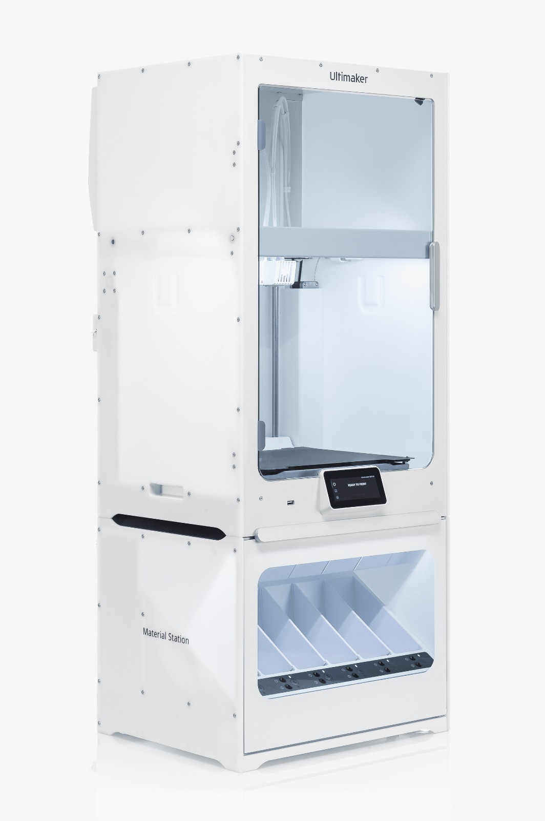 Material Station lleva a la UltiMaker S7 piezas y modelos impresos en 3D de alta calidad con el máximo rendimiento. Su enorme capacidad y el manejo de materiales con control de humedad aumentan la tasa de éxito de impresión, la calidad de impresión y el tiempo de actividad para desbloquear una producción confiable las 24 horas del día, los 7 días de la semana, al tiempo que minimiza el error humano, el tiempo de trabajo de impresión y el tiempo del operador.